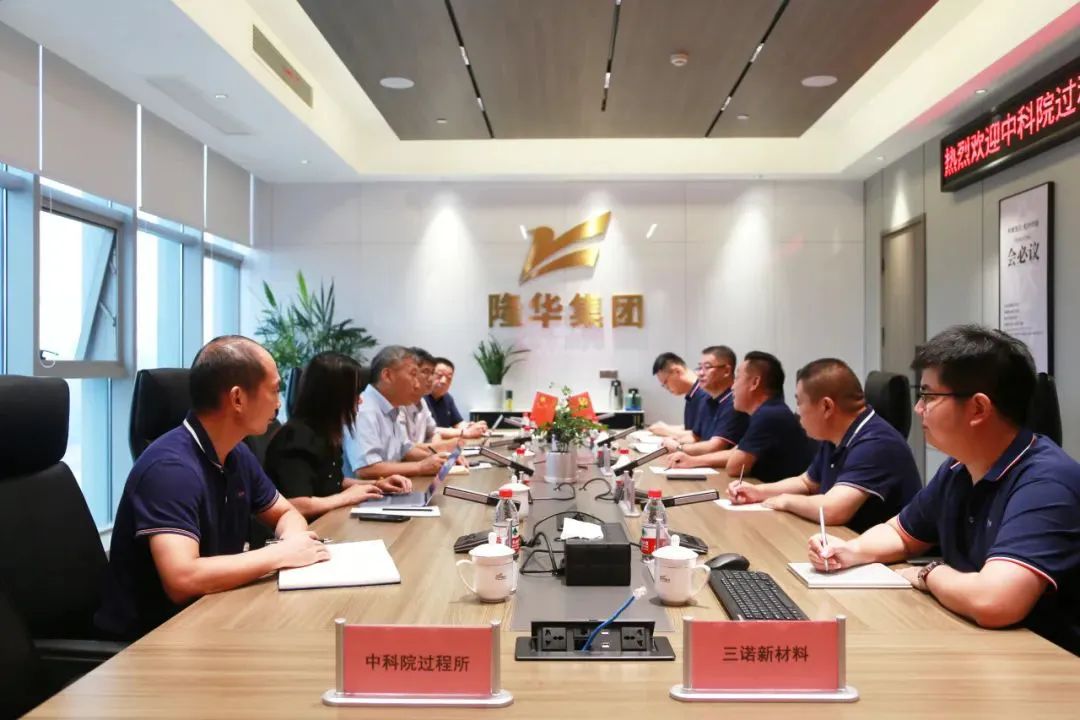 董事长李占明对曹宏斌一行的到来表示热烈欢迎,感谢中科院过程所对三诺新材的大力支持,并详细介绍了集团当前节能环保、电子新材料、高分子复合材料三大产业板块的发展情况以及近年来以科技创新推动企业高质量发展取得的重要成果。李占明表示,科技创新及科研成果转化是推动企业高质量发展的核心动能,三诺新材将以此次签约为契机,加快推动协议落地落实。此次双方精诚合作,优势互补,汇智聚力,将进一步通过新的创新平台,激发科技创新活力,切实将科技优势转化为产业优势、发展优势,助力萃取分离行业进一步发展。